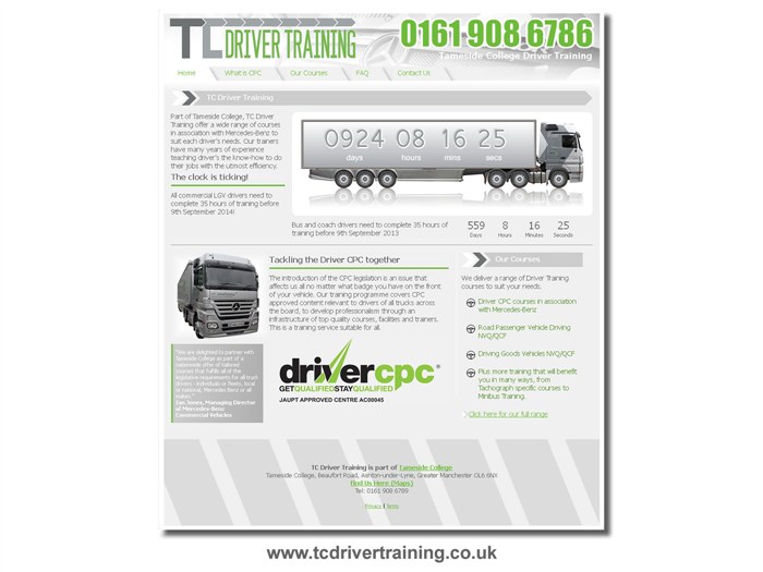 Winning the award coincided with the launch of the new Tameside College Driver Training website, www.tcdrivertraining.co.uk. The site offers advice and guidance for professional drivers seeking to improve their skills and meet required standards and legislation. The site also includes course information, a FAQ section and a countdown clock to the September 2014 (LGV) training deadline.